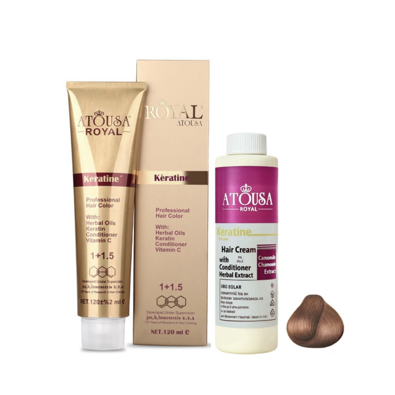 رنگ مو آتوسا رویال شماره 8.519 حجم 120 میلی لیتر رنگ گندمی به همراه اکسیدان آتوسا رویال مدل 2 نه درصدی حجم 75 میلی لیتر