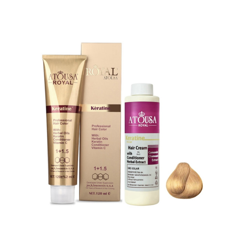 رنگ مو رویال آتوسا شماره 8.5 حجم 120 میلی لیتر رنگ بلوند طلایی روشن