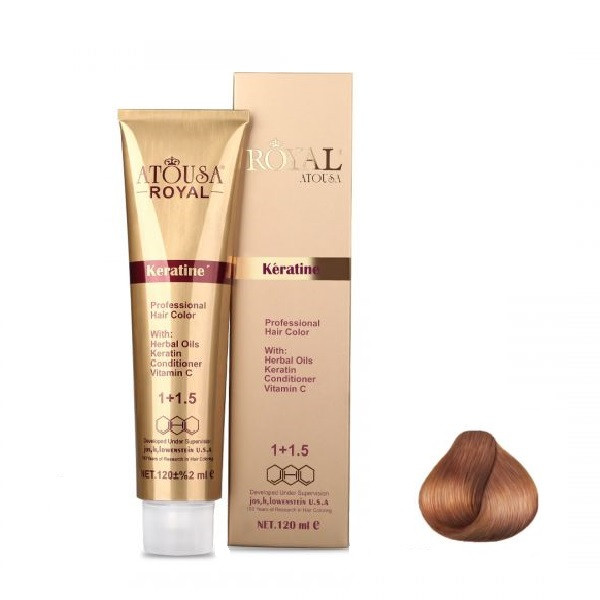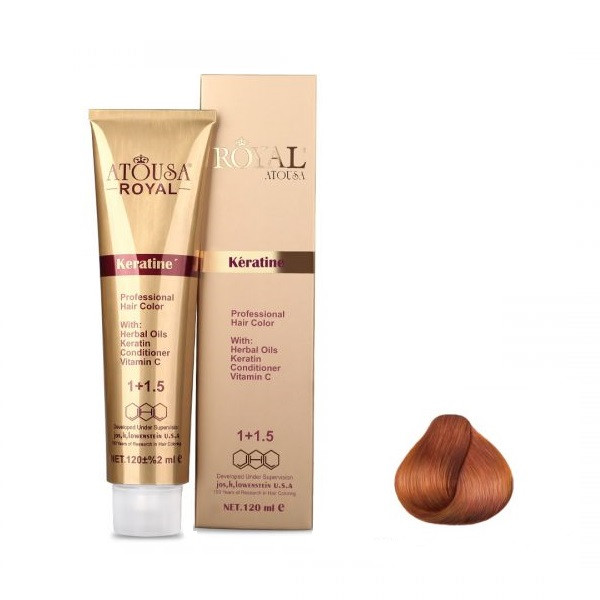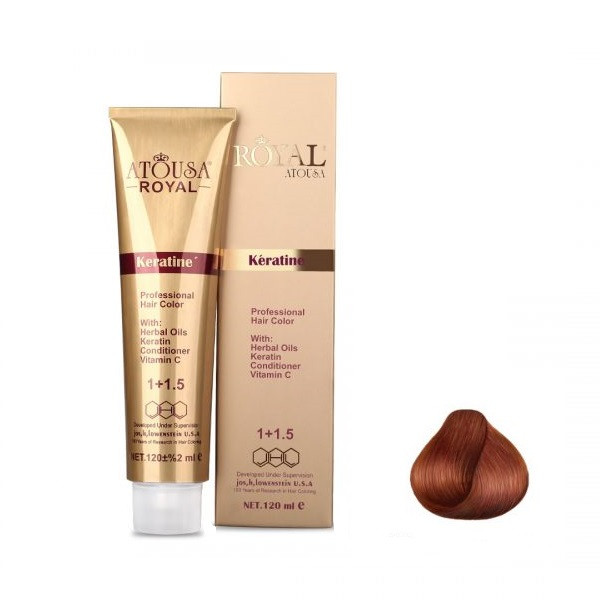 رنگ مو رویال آتوسا شماره 7.4 حجم 120 میلی لیتر رنگ بلوند مسی وسمه