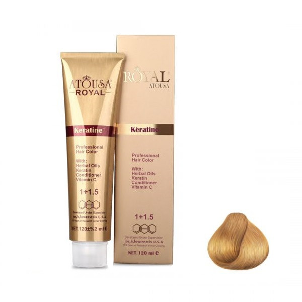 رنگ مو رویال آتوسا شماره 8.5 حجم 120 میلی لیتر رنگ بلوند طلایی روشن