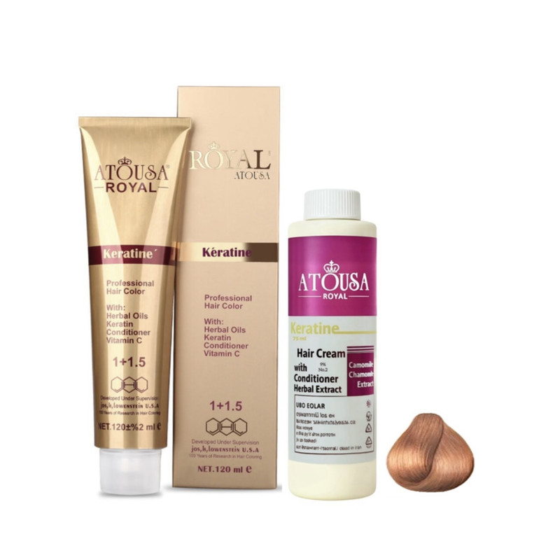 رنگ مو آتوسا رویال شماره 7.51 حجم 120 میلی لیتر رنگ بلوند بژ متوسط به همراه اکسیدان آتوسا رویال مدل 2 نه درصدی حجم 75 میلی لیتر