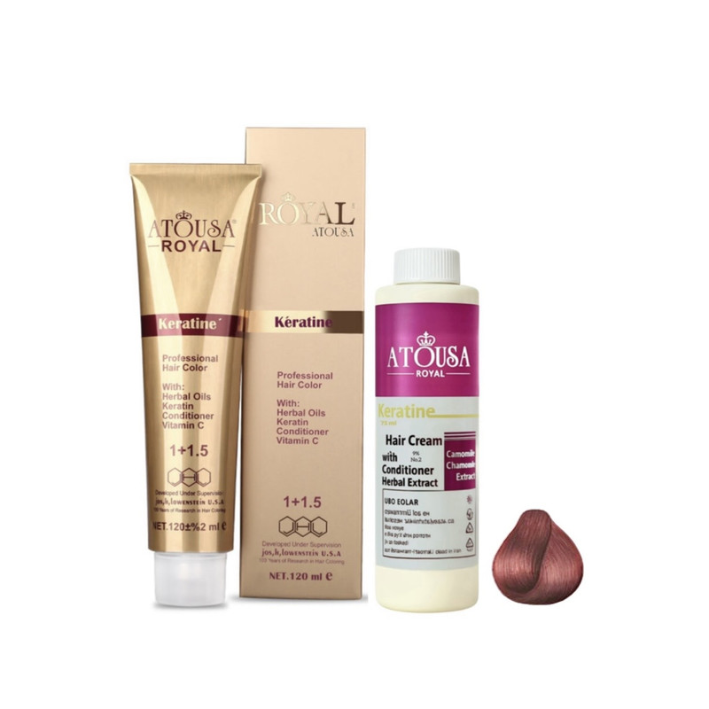 رنگ مو آتوسا رویال شماره 6.450 حجم 120 میلی لیتر رنگ مسی به همراه اکسیدان آتوسا رویال مدل 2 نه درصدی حجم 75 میلی لیتر