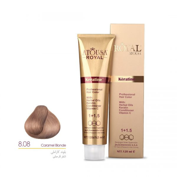 رنگ مو آتوسا رویال شماره 8.08 حجم 120 میلی لیتر رنگ بلوند کاراملی