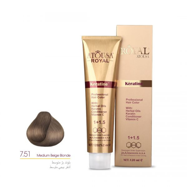 رنگ مو آتوسا رویال شماره 7.51 حجم 120 میلی لیتر رنگ بلوند بژ متوسط