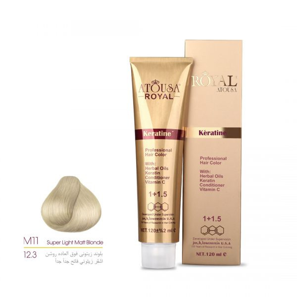رنگ مو آتوسا رویال شماره 12.3 حجم 120 میلی لیتر رنگ بلوند زیتونی فوق العاده روشن