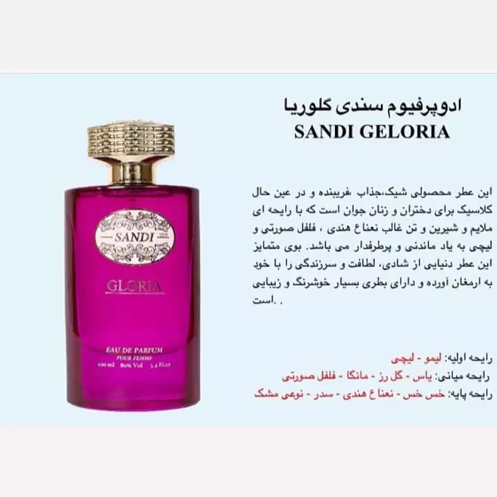 نت آغازی لیمو _لیچی نت پایانی خس خس – نعناع هندی – سدر – نوعی مشک نت میانی یاس – گل رز – مانگا – فلفل صورتی رایحه شیرین مناسب برای بانوان ساختار رایحه مرکبات , گل